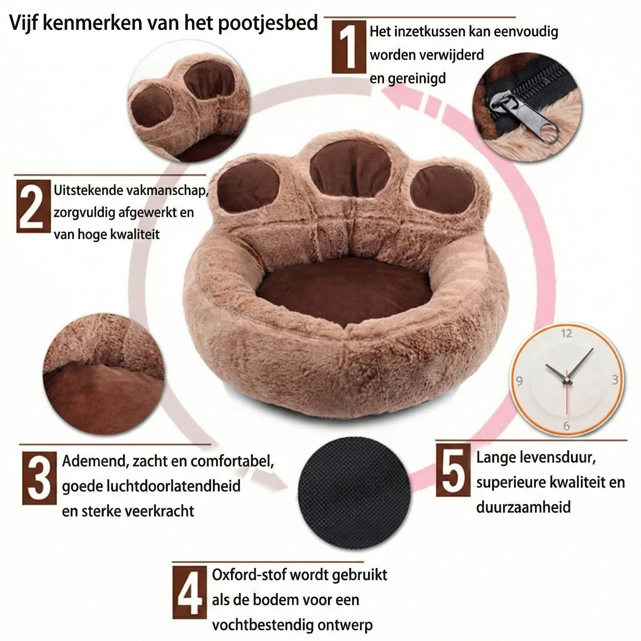 Naast comfort is er ook gedacht aan kwaliteit en gebruiksgemak. De mand is gevuld met hoogwaardig materiaal dat zijn vorm en veerkracht langdurig behoudt, zelfs na vele dutjes. De afwerking is van hoge kwaliteit (“exquisite workmanship”), wat betekent dat de naden stevig zijn en tegen een stootje kunnen.